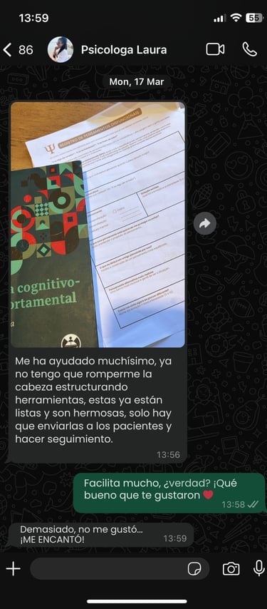 Por eso decidí crear las herramientas que yo misma necesitaba: prácticas, visuales, aplicables y realmente útiles en el día a día clínico. Nacieron en mi consultorio, fueron probadas con mis pacientes — y pronto comenzaron a ayudar a cientos de psicólogos en el mundo a sentirse con más seguridad, claridad y resultados en cada sesión.